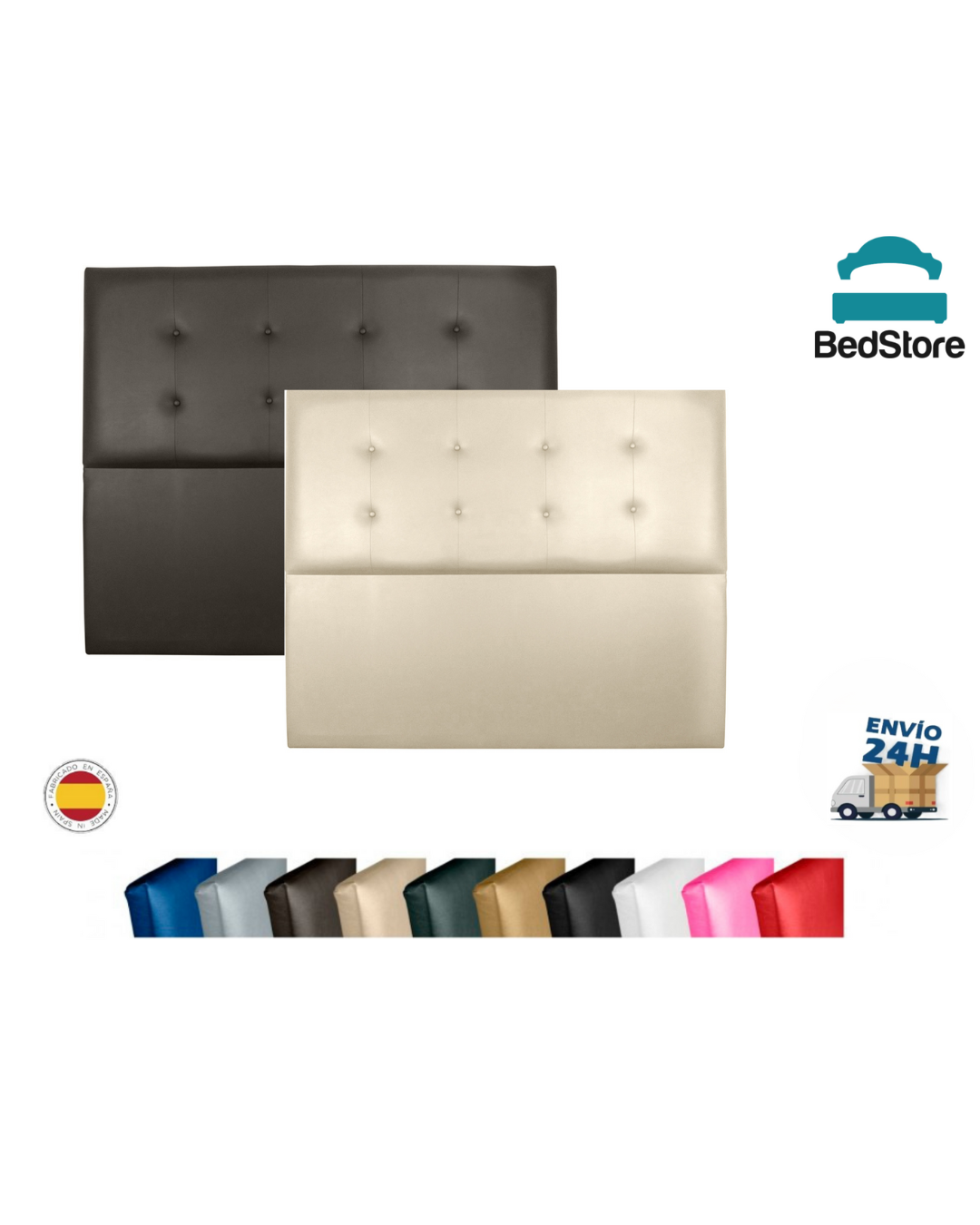 El cabecero de cama acolchado Mod. Cuenca está fabricado con estructura de madera y tapizado en polipiel de alta calidad, garantizando comodidad, durabilidad y un diseño elegante. Con fabricación española, ofrece un acabado resistente y profesional que destaca en cualquier dormitorio.